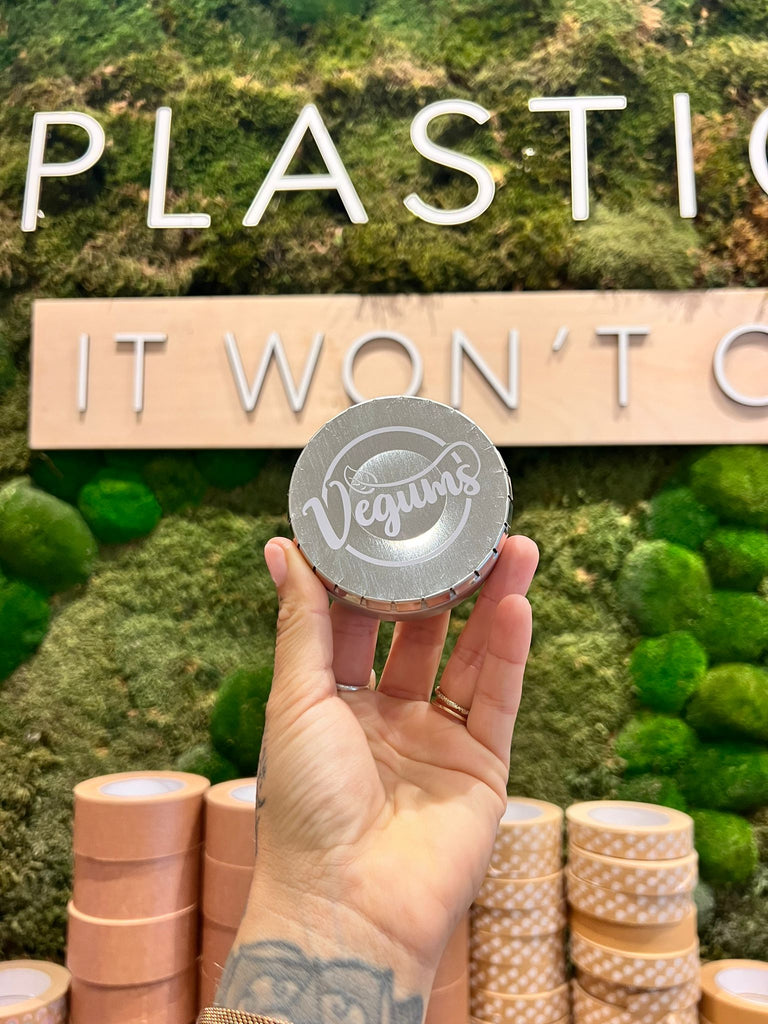 Vegums travel tin so you can take your Vegums with you each day! Please note this product is the storage tin ONLY