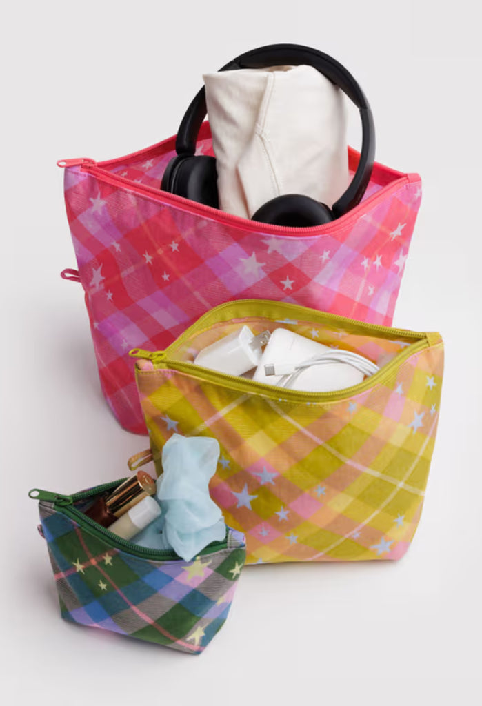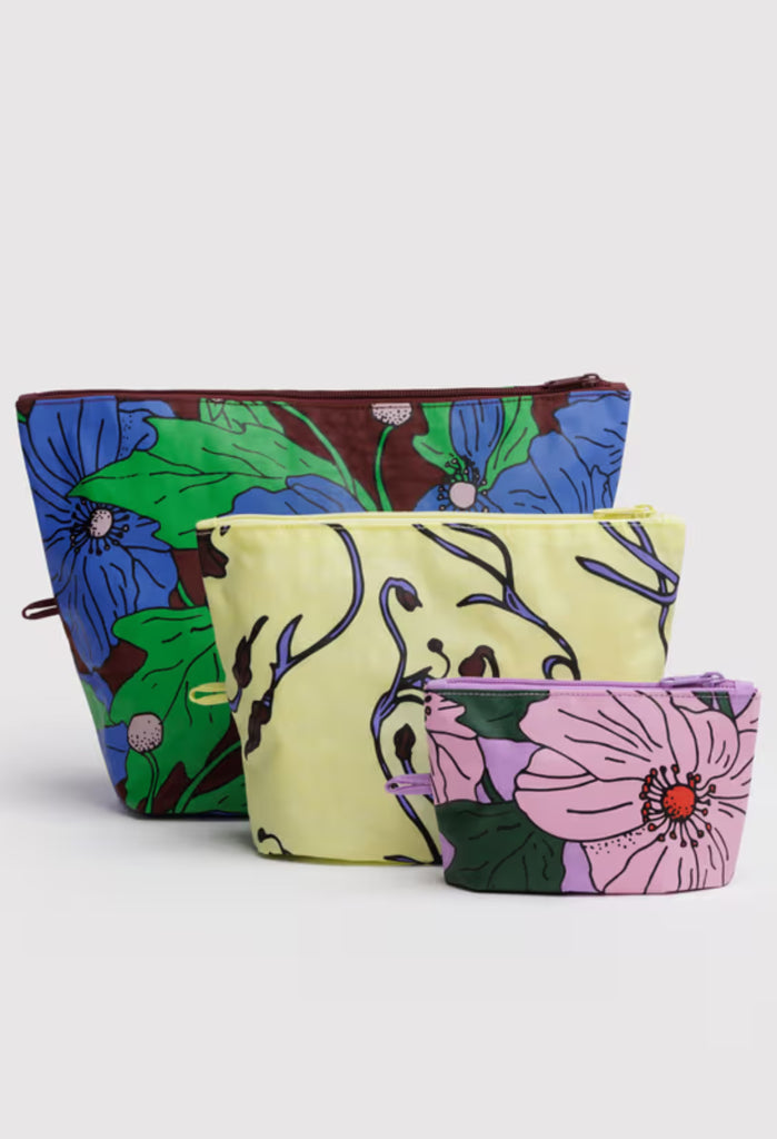 I absolutely love these, they are super convenient for using inside bigger backpacks/bags where I previously had my items loosely so could never find what I needed. The patterns are gorgeous and the different sizes are very handy and more spacious than I expected, but still pack flat. The material is very sturdy. Would highly recommend!