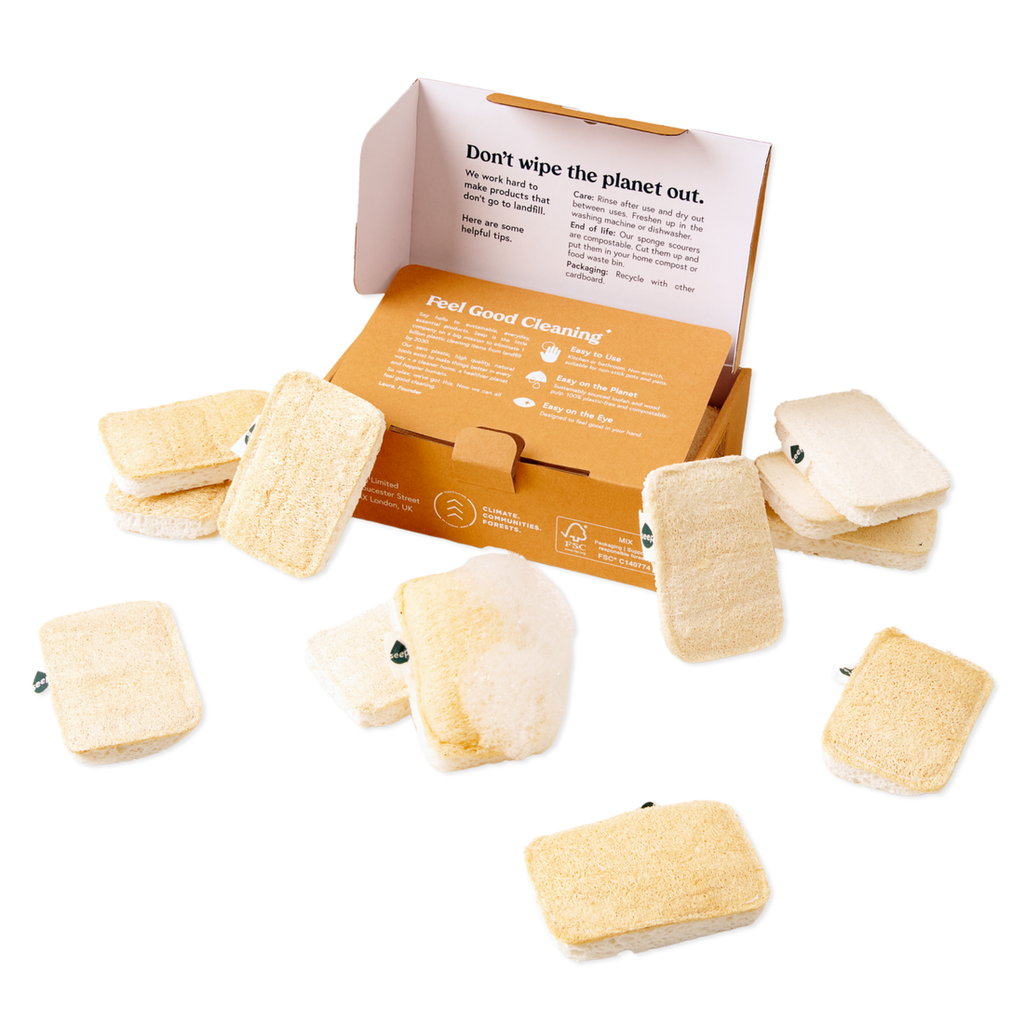 Did you know that traditional washing up sponges are made from plastic? Our best-selling eco sponge with loofah scourer has zero plastic and works just as well (if not better) as a plastic sponge.