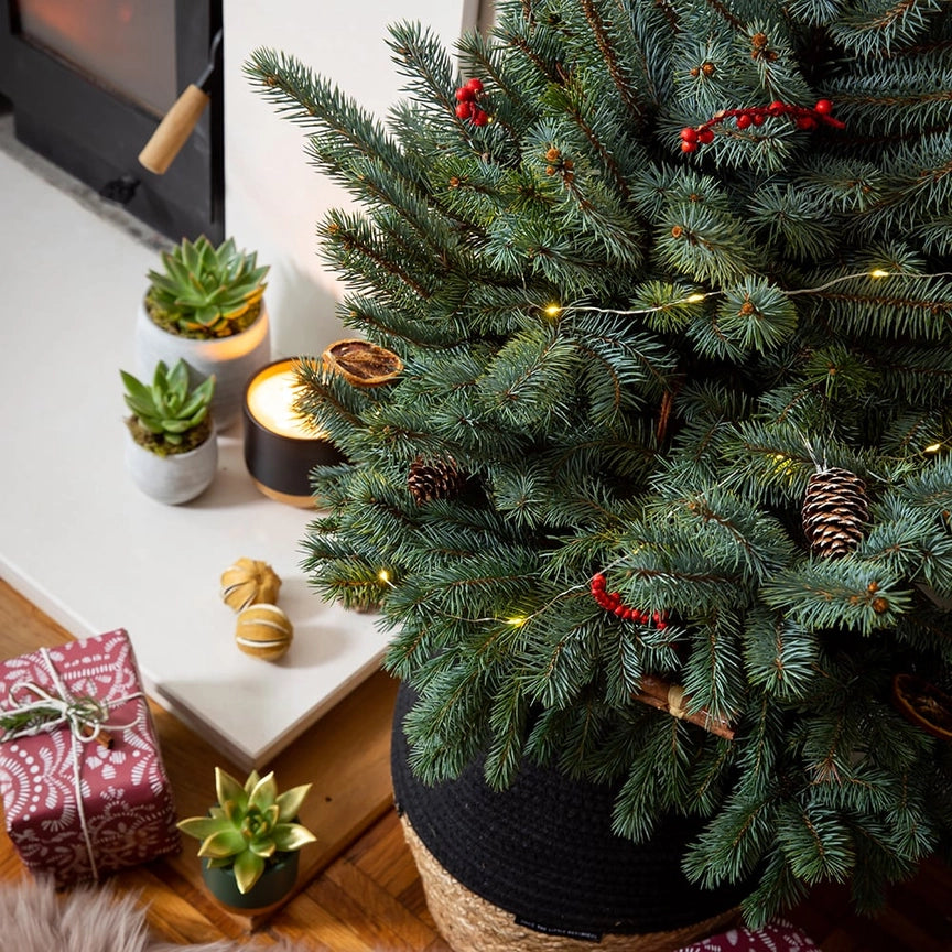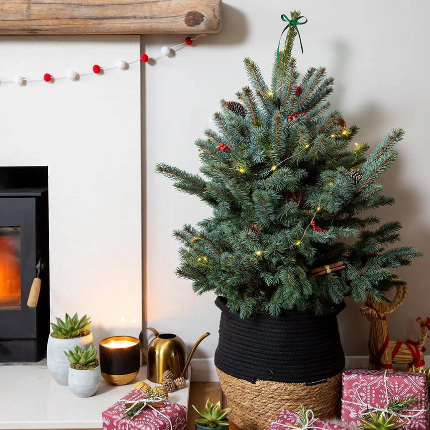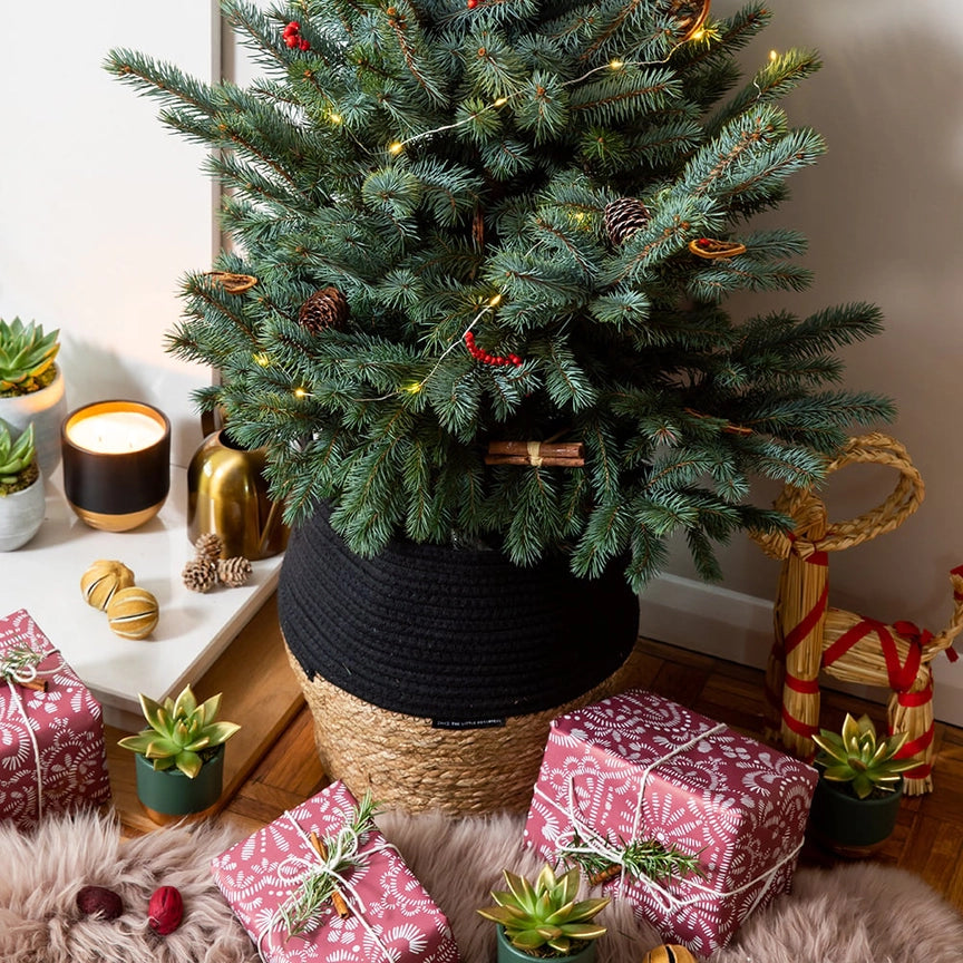 This unique variety is called Baby Blue Pungens Picea and we guarantee it will brighten up your indoor space. This tree arrives in our Little Botanical XL Belly Basket and will instantly make your home feel super Christmassy.