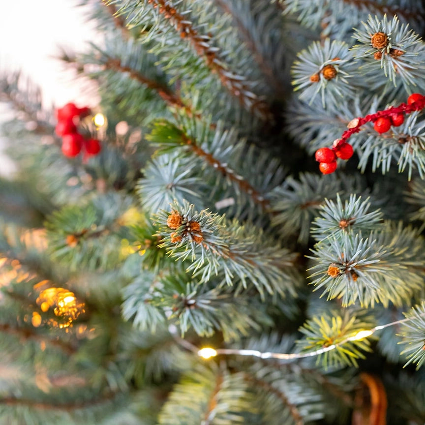 This beautiful living tree is the perfect size for a small room or as an additional tree to make a room in your home feel extra Christmassy! Beautiful and unique in colour, those “Baby Blue” needles give this tree a truly different look compared to your average Christmas Tree.