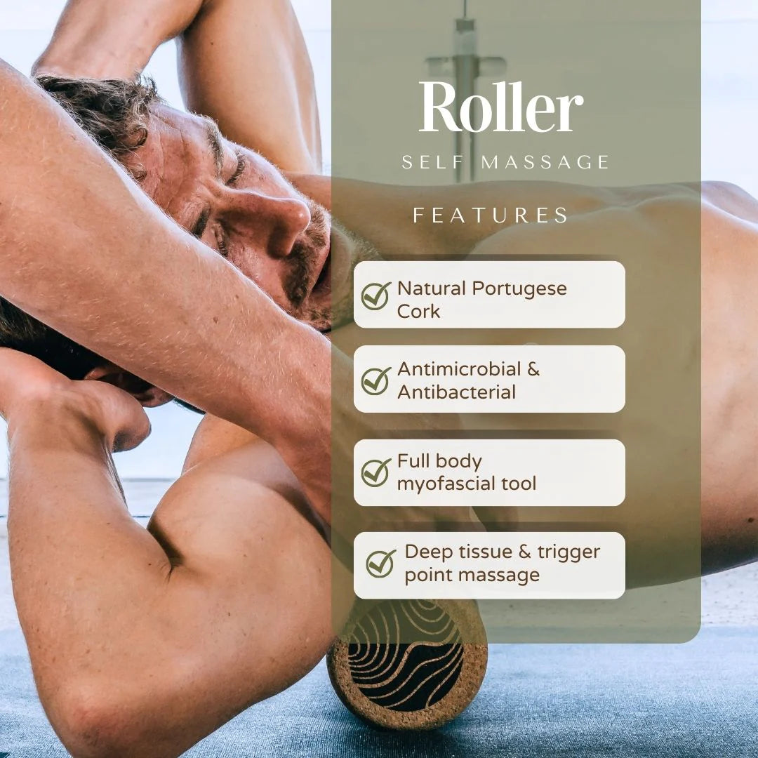 The Movewell Cork Massage Roller is an ultra-light and compressive fine grain natural self-massage tool made from certified Portuguese Cork. This roller can be used to roll throughout the body, the 100% Portuguese cork offers a firmer, yet 30% more compressive feel than standard cork, giving you a deep tissue massage and myofascial release.