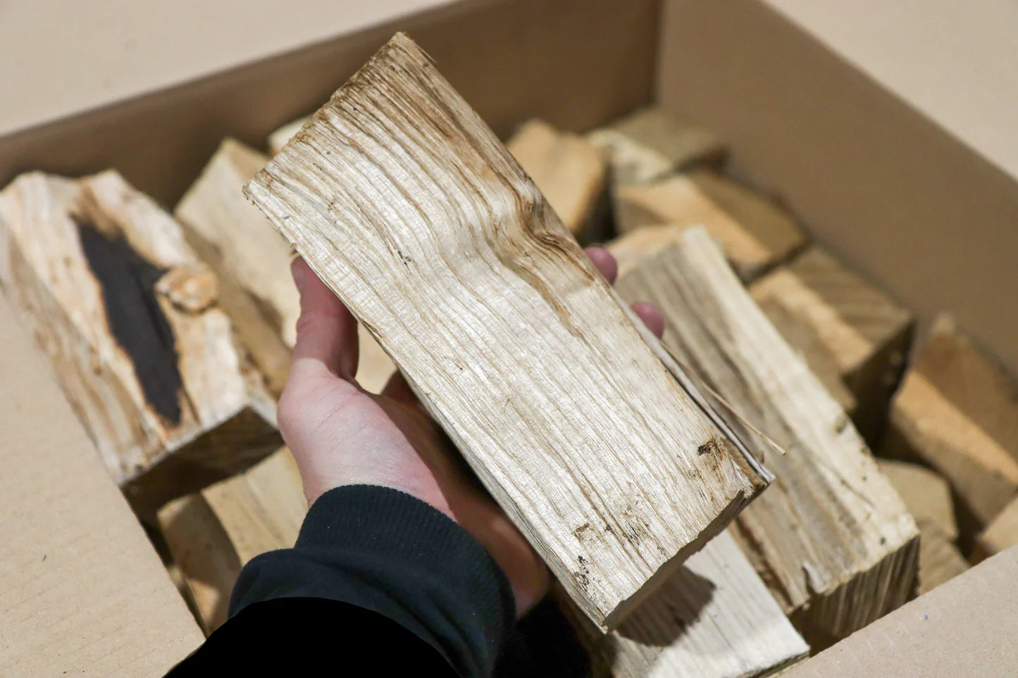 These natural firelighters are UK manufactured with no chemical smell and our super dry British kindling avoids a lighting anti-climax. The logs are kiln-dried British hardwood and Woodsure certified 'Ready to Burn', so they burn hot, long and with minimal smoke.