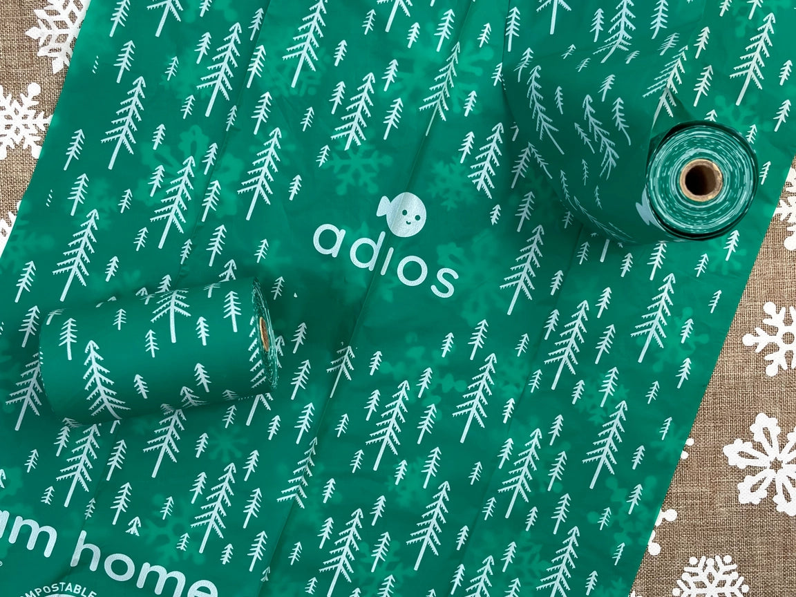 Adios Plastic Christmas Edition Compostable Poo Bags - 4 Rolls - x60 Pack