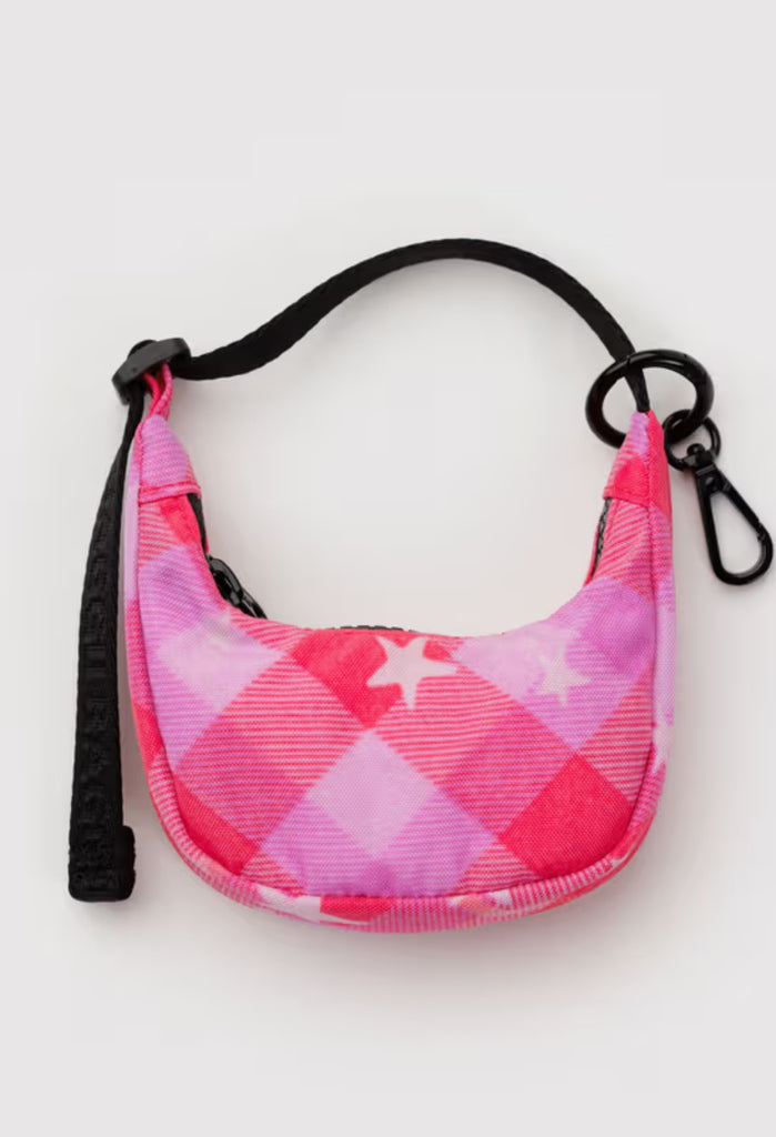 This BAGGU Crescent Bag charm decorates your larger bag while keeping small items like credit cards or earbuds close at hand!