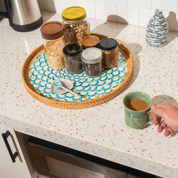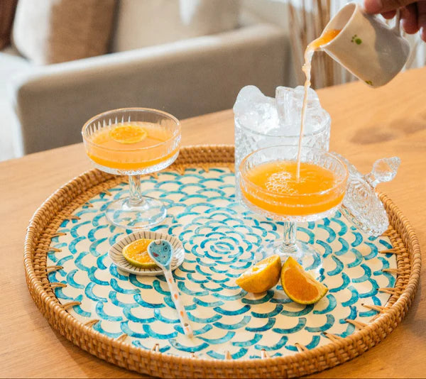 Bring a piece of the coast into your home with the lovingly crafted Brighton rattan tray. The bright blue and calming white create a captivating contrast which will beautifully elevate any space into a breezy coastal Eden.