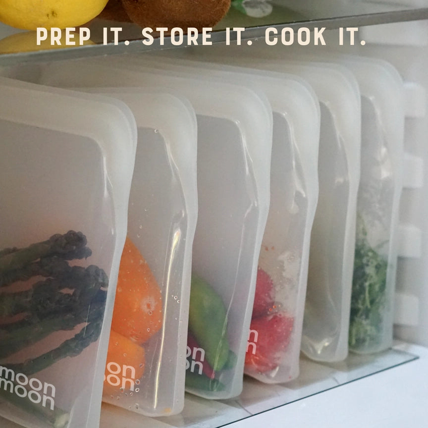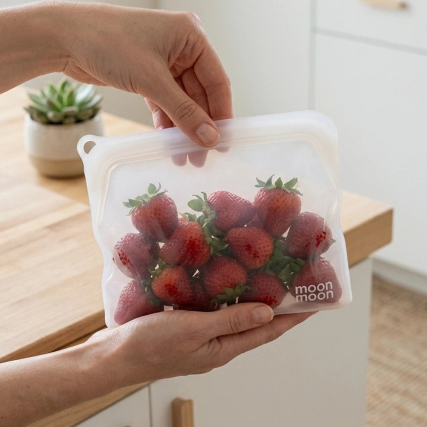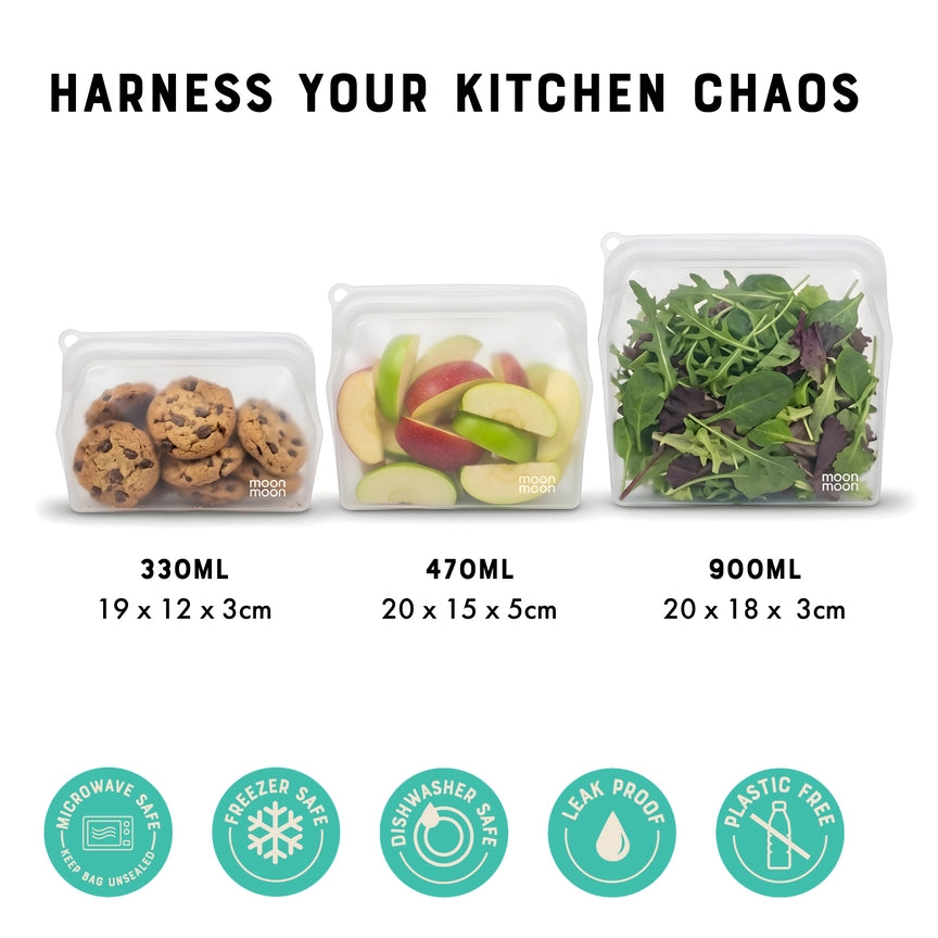 Moonmoon Reusable Silicone Food Storage Bags Clear - x3 Mixed Pack