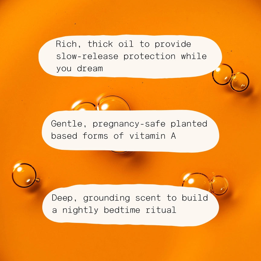 This is a rich and replenishing facial oil for normal to dry skin, providing calming slow-release nourishment while you dream and a soft, radiant complexion every morning. This premium, organic, cold-pressed oil is rich in nutrients that support skin's natural resilience and bounce. Contains gentle botanical forms of vitamin A which are kind to skin and traditionally favoured during pregnancy.