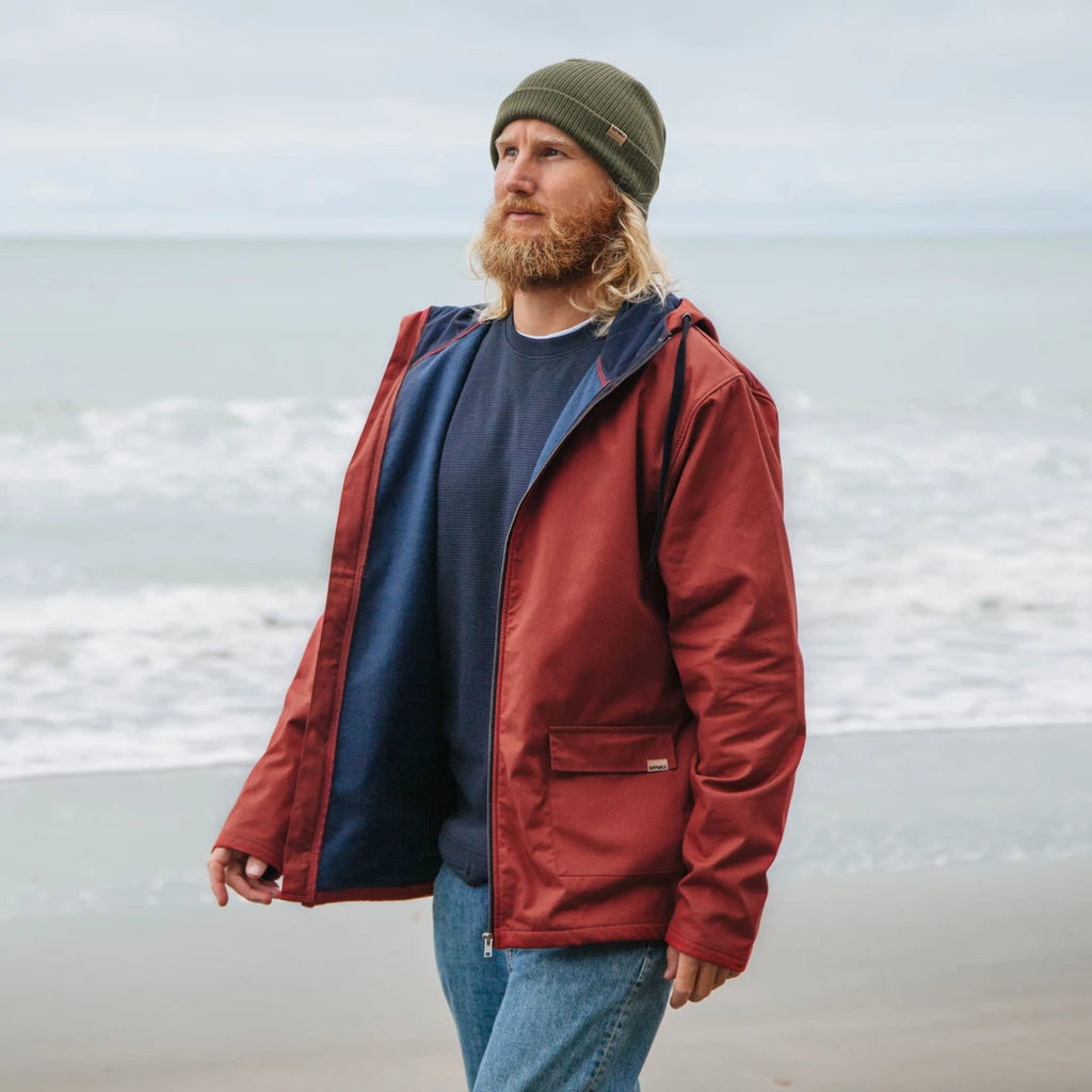 The Rapanui men's fleece lined raincoat is your go-to for blustery coastal walks. This men's lined rain jacket with hood is made from a water-resistant organic cotton canvas and has a cosy fleece lining to keep you warm. It's a proper men's outdoor fleece jacket, designed to be windproof for all your adventures. Featuring an adjustable hood and spacious pockets, this fleece lined jacket for men offers reliable protection and comfort, whatever the weather throws at you.